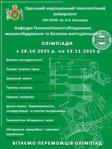 З 28 жовтня по 13 листопада 2025 року на кафедрі ТОМ та БЖД відбулися Олімпіади з профільних дисциплін (у зв’язку з воєнним станом олімпіади відбувалися в змішаному режимі of- та on-line конференції на платформі Zoom згідно графіку).